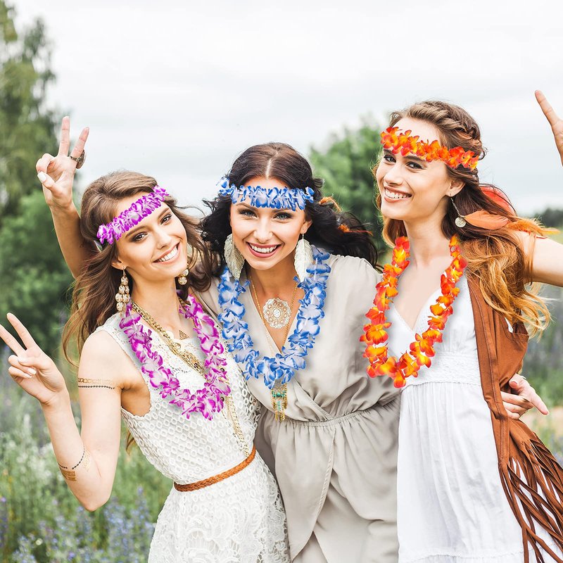 HongyiTime 56 Counts Hawaiian Leis, Luau Party Supplies of Elastic Flowers Necklaces, Headbands and Wristbands - Tropical Hawaiian Decorations, Beach Party Decorations, Birthday Party Favors