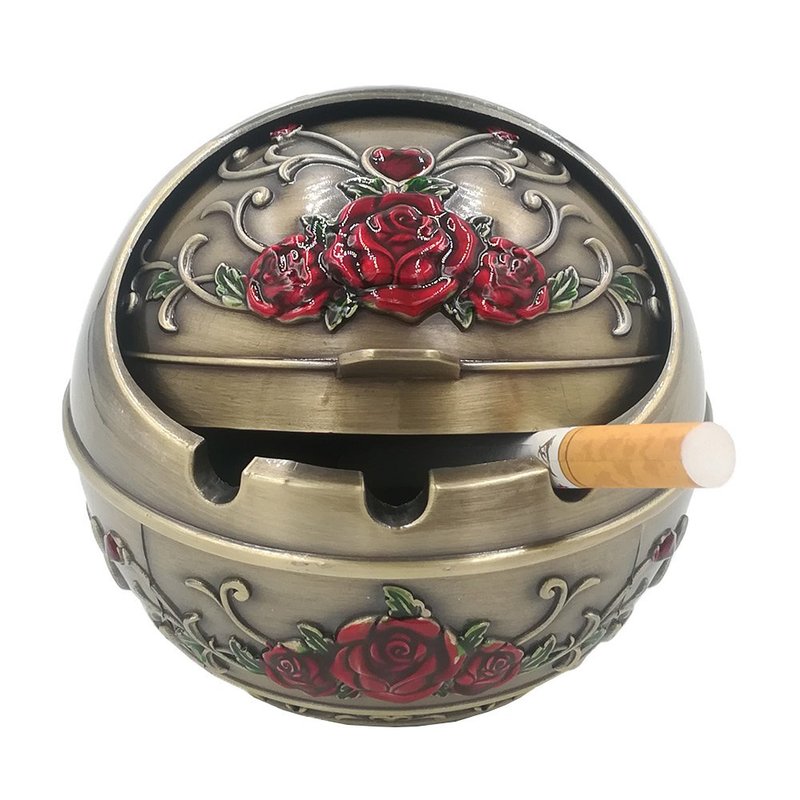 - ELEGANT ROSE PATTERN DESIGN,A wonderfull vintage windproof ashtray to brighten everyone's eyes and light up your room with quaint rose embossing pattern