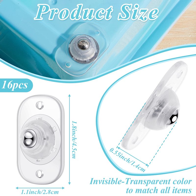 Honoson 16 Pcs Self Adhesive Caster Wheels Mini Swivel Wheels Stainless Steel Paste Universal Wheel 360 Degree Rotation Sticky Pulley for Bottom Storage (Clear with 1 Steel Ball Style)