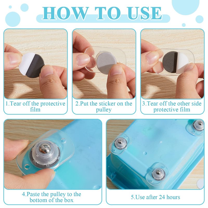 - Easy to install: you need simply peel the film on the back, then firmly press onto the smooth surface, and please wait for 24 hours that will be good when using, therefore the smooth pulley makes you put heavy objects easily and conveniently