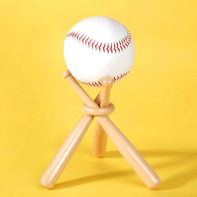 Baseball stand holder wooden baseball bats display stand holder set for ball for kidsCute baseball stand display:For a sales meeting with a baseball themeFor room decor in your kids roomDisplay for a party to hold a baseball that is special to the guest of honorClassic and sturdy baseball stand:Made of schima superba, removable and assembled, easy to use.Memorabilia display stand:Product is great for mounting my collectible baseballs, such as soft strike tee balls and other softballs/hard balls.Specifications:Material: schima superbaBaseball bat length: 5.9 inch/ 15 cmInstallation height: approx. 5 inchPackage includes:3 x Mini baseball bat1 x Wooden ringWarm notice:Baseball not included.