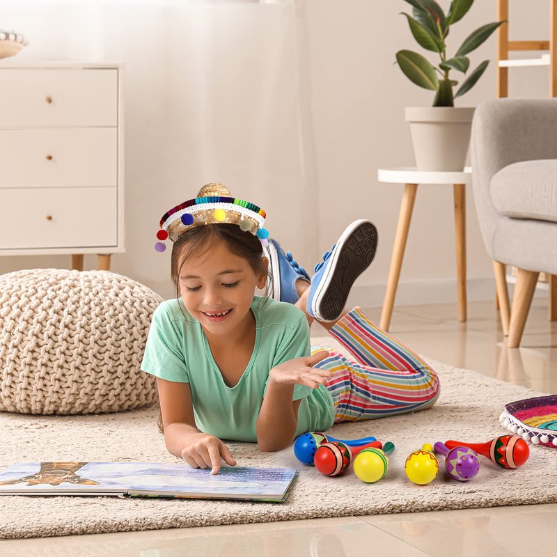 Honoson Wooden Fiesta Maracas Mini Sombrero Top Hat for Kids Festival Mexican Party Decorations (Fresh Style, 18 Pcs)