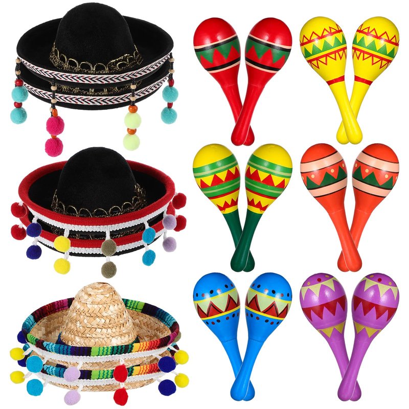 - Satisfy Your Desire for Wooden Fiesta Festival : you will receive 12 pieces of wooden fiesta maracas in different designs and 6 pieces of sombrero party hats, 18 pieces in total; You can use them individually or in combination, which can satisfy your desire for your Mexican and get you into the festive atmosphere