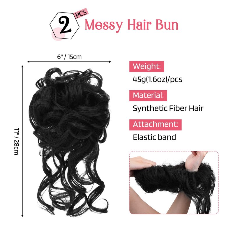 - [Pack of 2PCS] Comes with 2PCS tousled updo. The bun set meets all your need in various occasions, such as wedding, party, and daily use with double bun, half bun, top bun and low bun