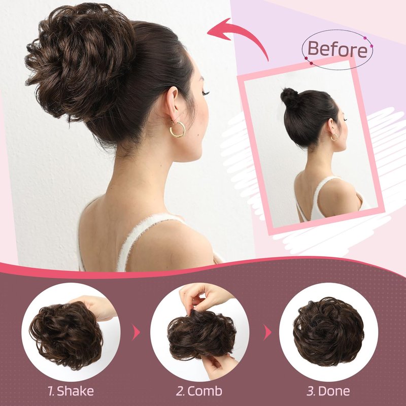 - [Style Versatile&Appropriate for any occasion] The messy hair bun piece suit various hair lengths, from short to long hair, making it a versatile option for different hair types, such as a top knot, low bun, side bun, or a half-up messy bun. Whether you're heading to work, a night out with friends, or a special event, this human hair messy bun is versatile enough to complement any occasion