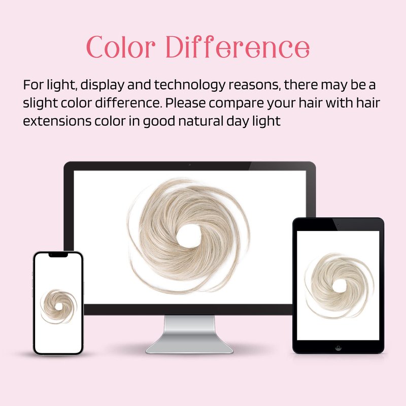 - [Please Note] Due to the screen resolution settings, you may see some slight differences between the color tone of the hair extension in the photos and the actual hair bun scrunchies