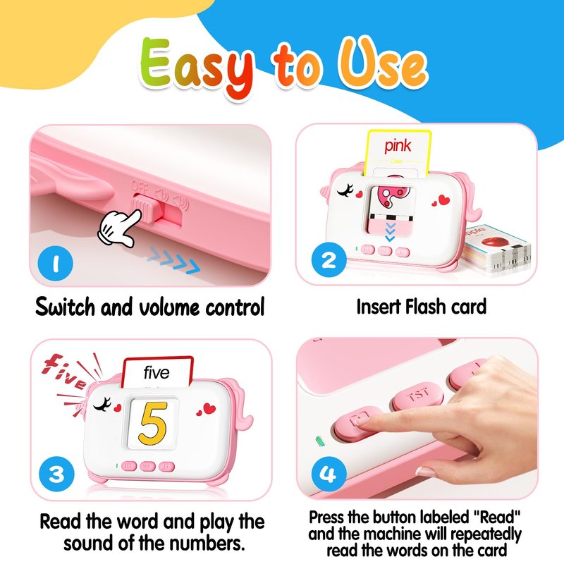 - [Learning Toys]: Talking flash cards, teaching children to listen, read and speak. It can not only be used as early education, learning machine, children's toys, etc. It is also a good helper for my mother. There are 4 children's songs built in, which can liberate my mother's hands!