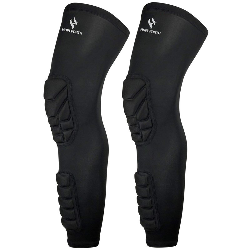 HOPEFORTH Knee Calf Padded 2 Pack Compression Leg Sleeve Thigh Sports Protective Gear Shin Brace Support for Football Basketball Volleyball Soccer Baseball Tennis Adult Youth Kids Pads for Protection. Thickened EVA pads,One Sleeve included Knee padded and Calf padded,The Comfortable padding on an arm sleeve reduces the risk of injury during hard hits or tackles to the ground.