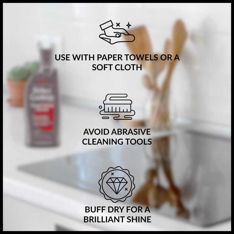 - No-Rinse Formula: Using a dry towel, easily remove excess stovetop cleaner on your cooktop and buff it dry to a brilliant shine without the need of using an ounce of water