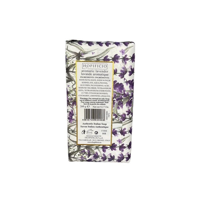 - Hopificio Aromatic Lavender is All natural and organic ingredients. Made of responsibly sourced materials. Filled with authentic, all natural and organic ingredients, Hopificio’s finest milled soaps will leave your face and body feeling cleansed, moisturized, and luxurious.