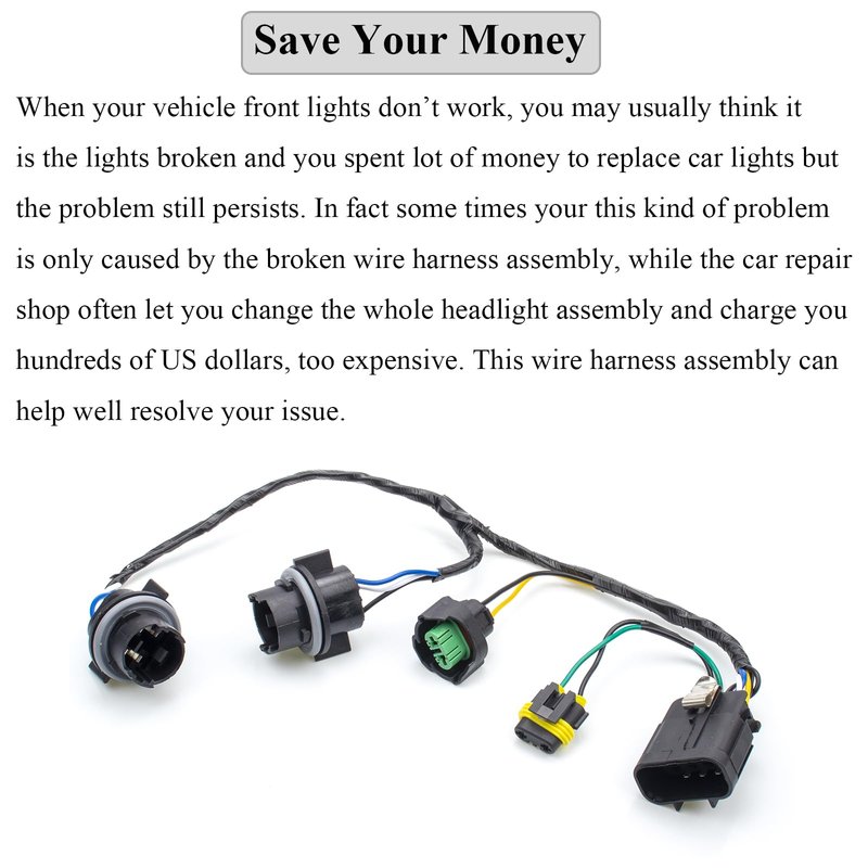 - When your vehicle front headllights do not work, this wire harness assembly may be your choice to well resolve the issue.