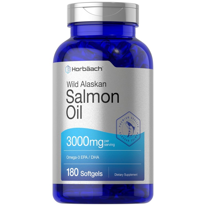 Horbaach's Wild Alaskan Salmon Oil is the complete Omega-3 supplement, bringing you 3,000 mg of Wild Alaskan Salmon Oil per serving in convenient quick release softgels. Our ultimate high-quality formula features the finest source of Salmon Oil, a potent source of EPA and DHA. We hold our Omega's in the highest regard, purifying to eliminate mercury and ensure exceptional quality for your routine. Receive superior value today with our 180-softgel supply!