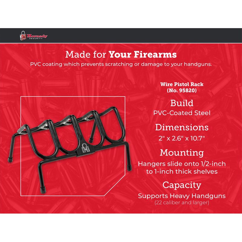 - Wired For Storage – Maximize your gun safe's storage capacity with this easy to install wire gun holder. Offers a secure and balanced rack for compact pistols, full-size handguns, revolvers and semi-autos