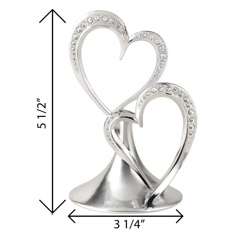Hortense B. Hewitt Sparkling Love Double Hearts Anniversary, Engagement, Wedding Cake Topper, 5.5-Inches, Metal with Rhinestones, Silver