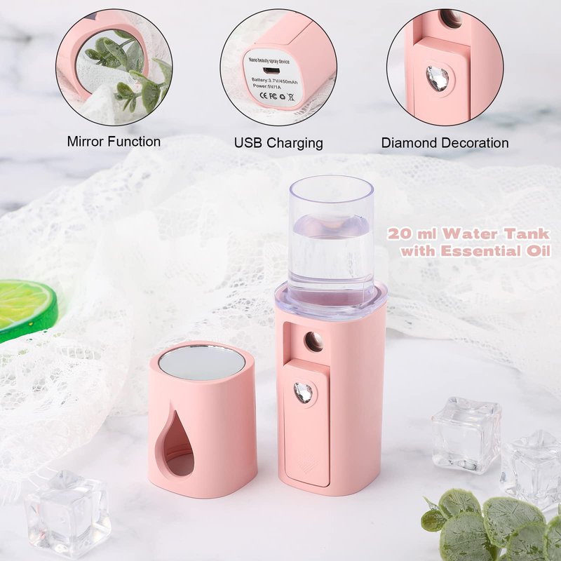 Hortsun 8 Pieces Handheld Personal Diffuser Portable Diffuser for Essential Oils Aromatherapy Diffuser Pocket Size for Desk Office Travel Car with USB Cable, White and Pink