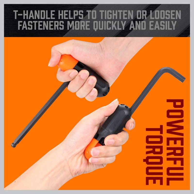 HORUSDY Allen Wrench Set, Hex Key Set Long Arm Ball End Hex Wrench Set, Inch/Metric T Handle Allen Wrench Set