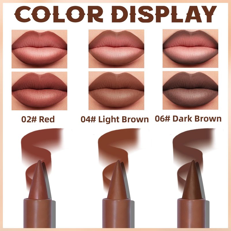 - 3 Colors Gradient Lip Liner Set: This gradient lip liner set comes in three colors, red, light brown and dark brown, which are sufficiently coloured to easily draw full lips and provide beautiful colour to the liner. In addition, it can also be used directly as a lipstick to apply to the entire lips.
