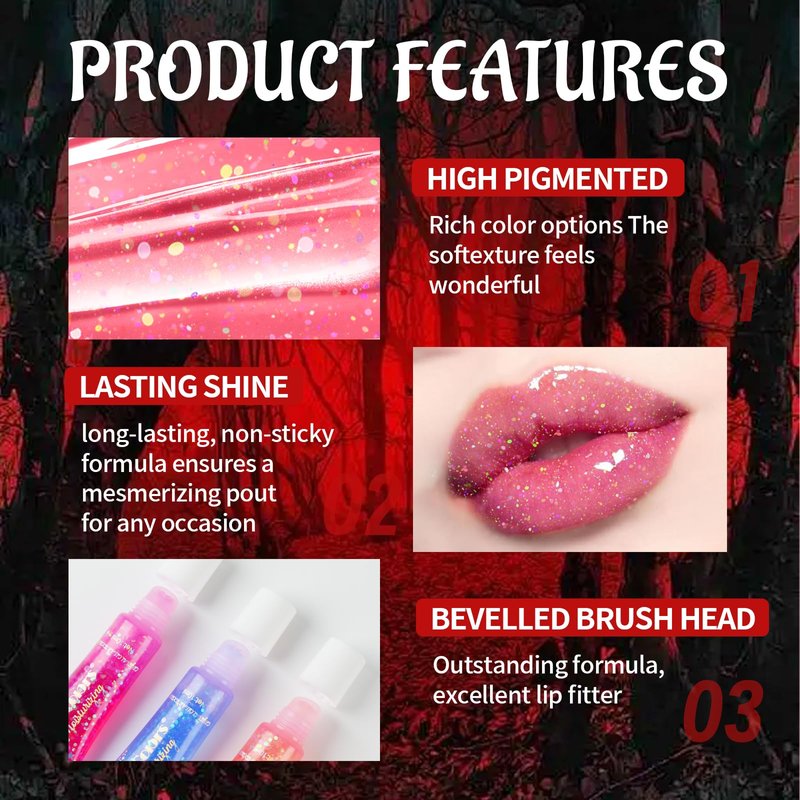 1.3 colors glitter lip oil set with black lip liner for all special occasions.