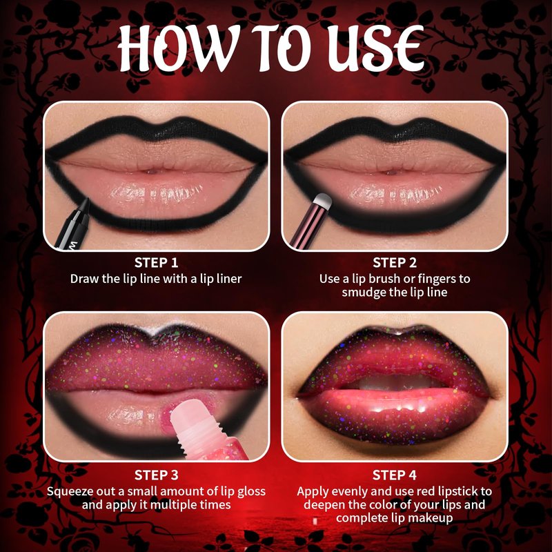 - 3 Colors Glitter Lip Oil Set: This set contains 3pcs lip oil and a black lip liner. The smooth lip liner can easily define the shape of your lips and create plump lips. Combined with the lip oil, it moisturizes and plumps lips to relieve dryness. The black and pink colors create a unique lip look that shows personality.