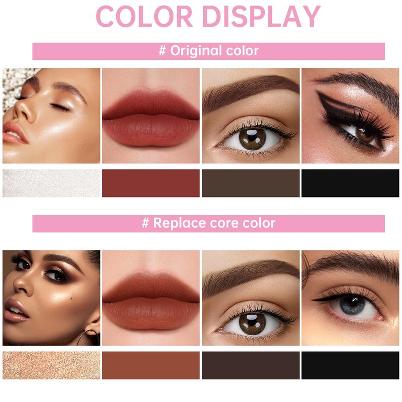 - 【4 in 1 Makeup Pen】One makeup pencil has multiple makeup functions with four replacement refills to choose from. The brown and black makeup pencils can help fill in your eyebrows or create winged eyeliner, the red tip can be used as a lip liner to outline your lips for a fuller look, and the pearlescent tip can be used to highlight the inner corners of your eyes, brow bones and the tip of your nose, and more.