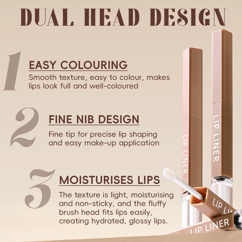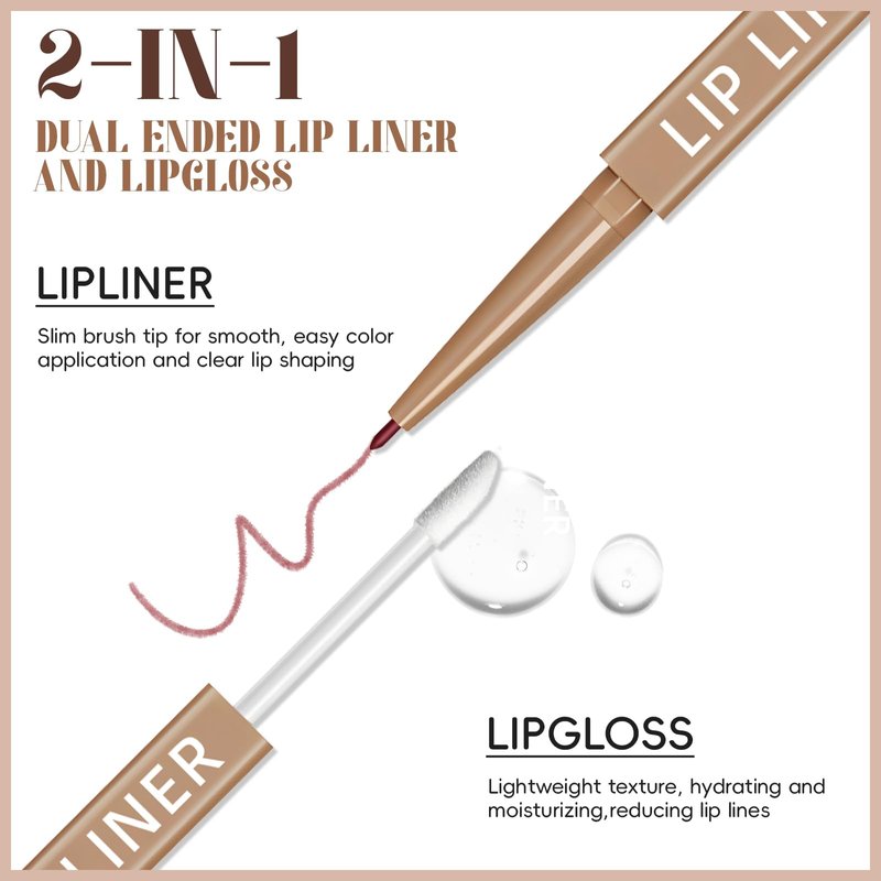 - 【Convenient Design】Double head design, which is one head is lip liner, another head is clear lip oil. You can use the lip liner alone to create a matte lip, and also can use a lip liner to outline the edges of your lips and then use the lip oil on the other end to apply your full lip to create a plumping effect!