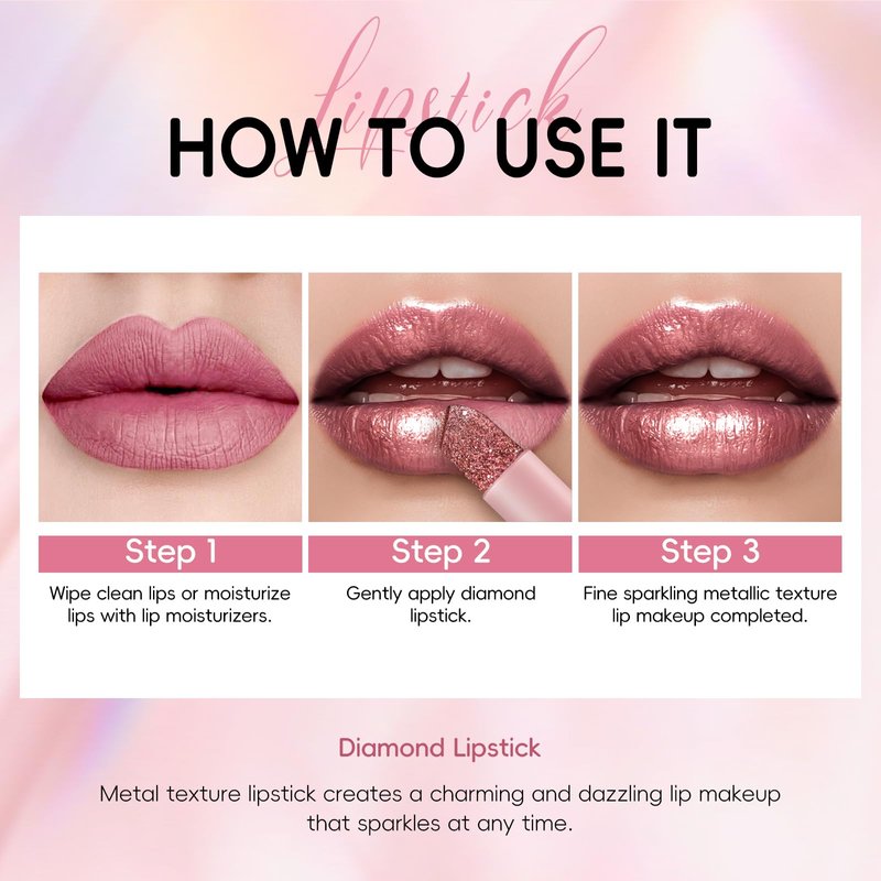 - Shimmer Metallic Lipstick: HOSAILY metallic lipsticks unleash a diamond-like sparkle, available in different shades of metallic nude and metallic pink, creating a dazzling shimmering effect with every application, perfect for eye-catching lip looks.