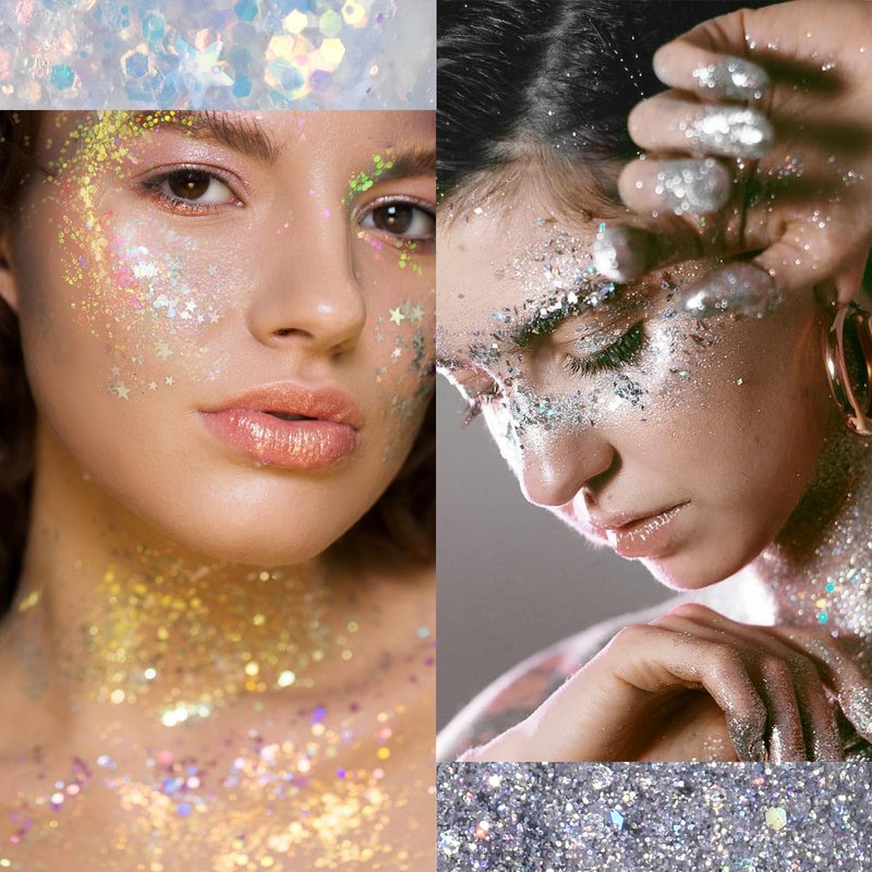 - 【New Body Glitter Stick】Unlike traditional body glitter gels, our face and body glitter sticks are made with an upgraded formula that provides excellent adhesion and is ready to use without makeup brushes or sponges. Once it meets the light a magical vibrant and shimmering effect occurs, ideal for shiny effects on the body face and hair accessories.