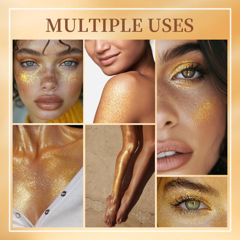 - Multiple Uses: It not only can be used as a shimmering eyeshadow and face highlighter, but it can also be used on lips collarbones, décolletage, arms, legs, and anywhere you want to brighten up for a reflective, shimmering effect