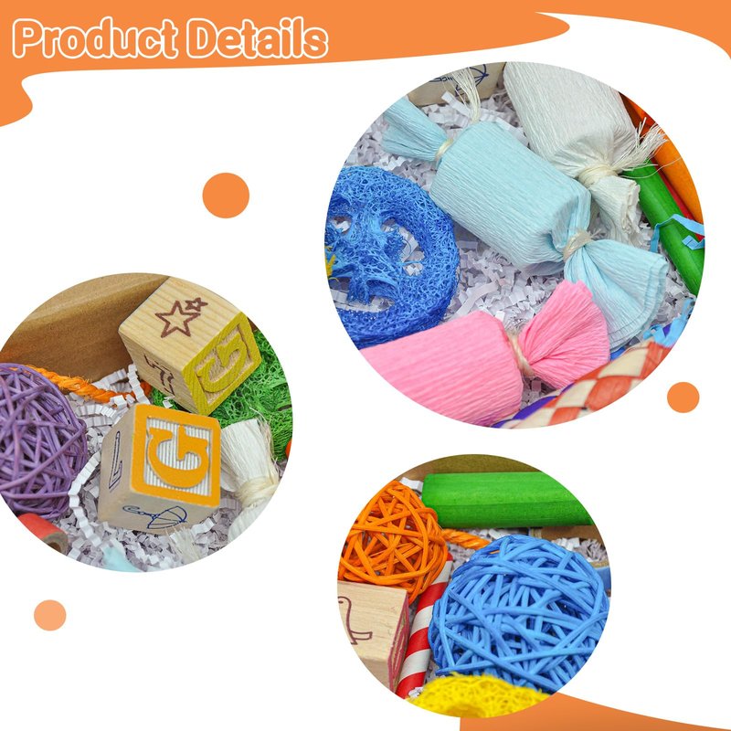 - Bright & Safe Materials: Crafted from bird-safe wood, loofah, and paper, all dyed with non-toxic food-grade colors, these bird foraging toys are both visually appealing and safe for your feathered friend to enjoy.