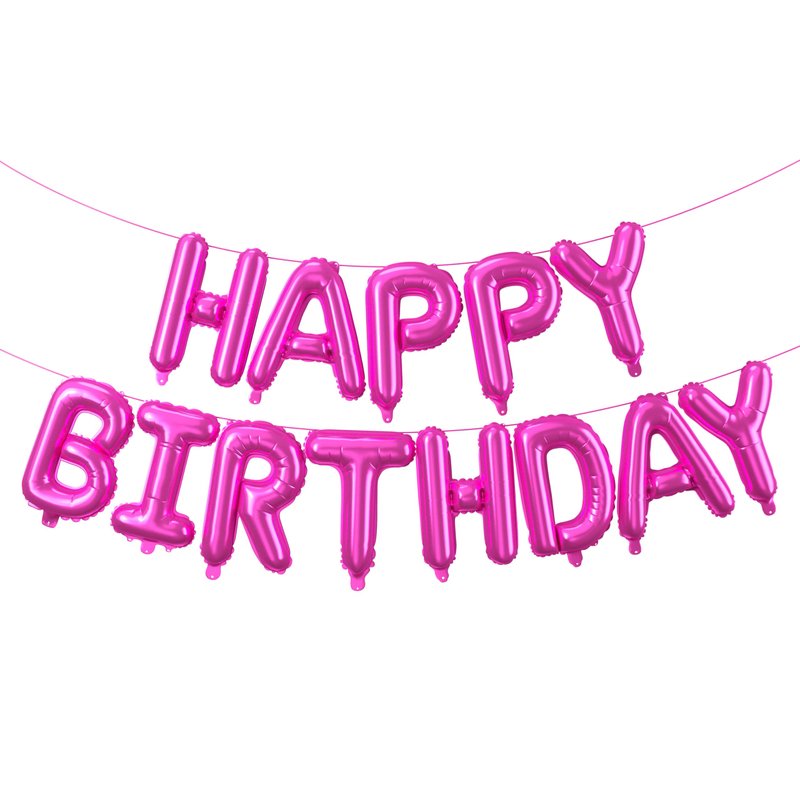 - Hot Pink Happy Birthday Balloon Banner Set:16 inch bright hot pink foil letter happy birthday balloons.Each package come with 13 pcs independent letter balloons which can be combined into "HAPPY BIRTHDAY",1 pcs straw and 1 white ribbons 10 meters long.Create a memorable atmosphere with this versatile and stylish birthday balloon kit.