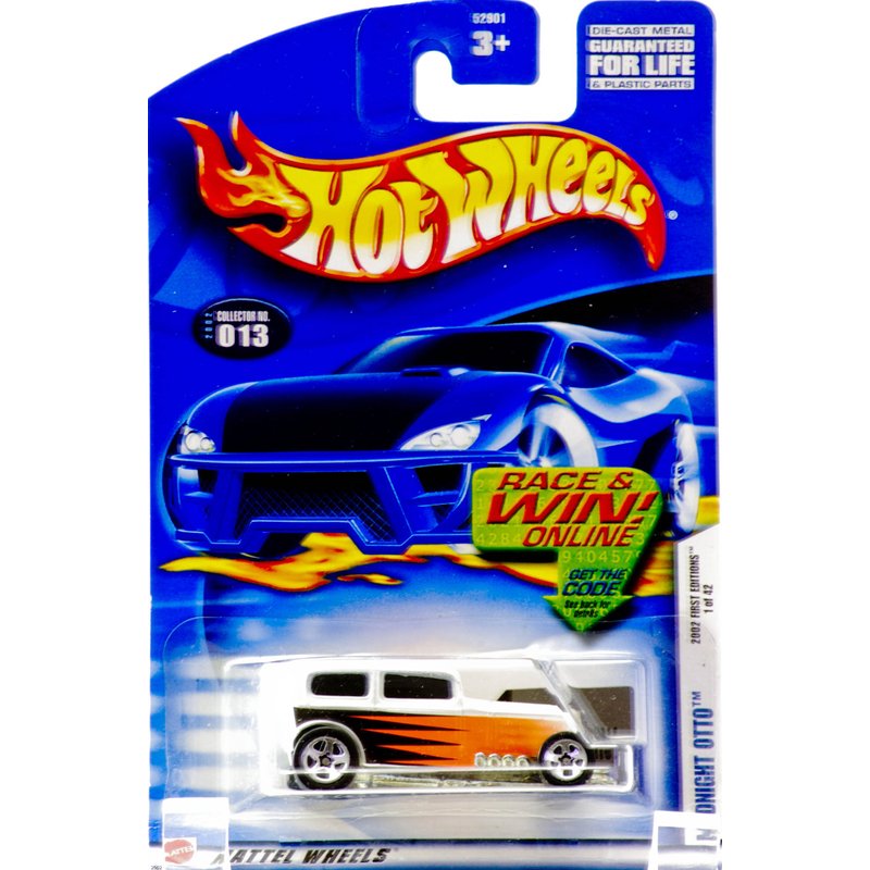 Hot Wheels 2002 First Editions Midnight Otto Card 13 2002 saw the release of 240 cars, hitting the line with lots of power was the several hard to find Treasure Hunts. 2002 also released mini collections including Wild Frontier, Corvette, Spectraflame II, Trump Cars and Sweet Rides. For those who want to win at the line there is a Hot Rod Series of 4. The famous Red Line Sereis includes The Demon, Side Kick, Chevy Nomad and 1932 Ford Vicky. There are 42 First Editions, 15 series of 4 cars, 12 Treasure Hunts and 126 mainline, totaling 240 cars. So look for your favorite Ferrari, Chevy, truck, Ford, Mini, Shopping Cart or Spectraflame vehicle from Hot Wheels.