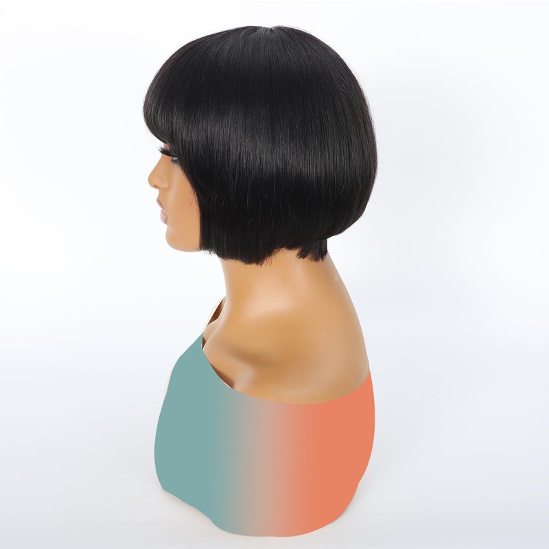 HOTJAR Pixie Cut Wigs For Black Women Short Human Hair Wigs With Bangs Short Layered Pixie Wigs Full Machine Made Wig Natural Black Color (Pixie cut wigs 292# 8 Inch)