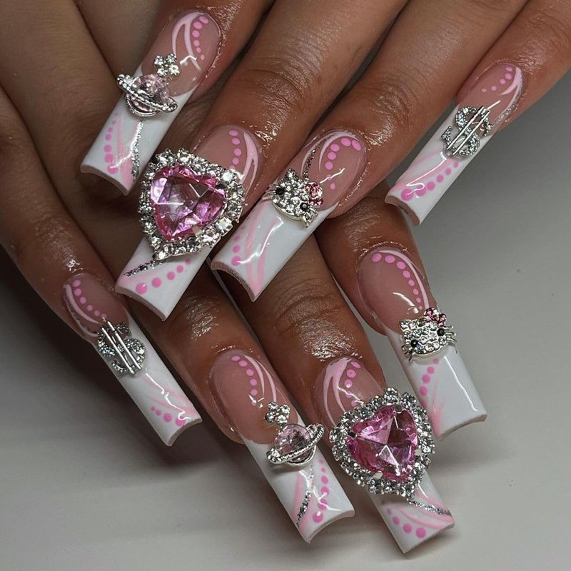 Meet your new favorite nail accessory: the Pink & Silver Nail Charms Set! This dazzling collection includes: