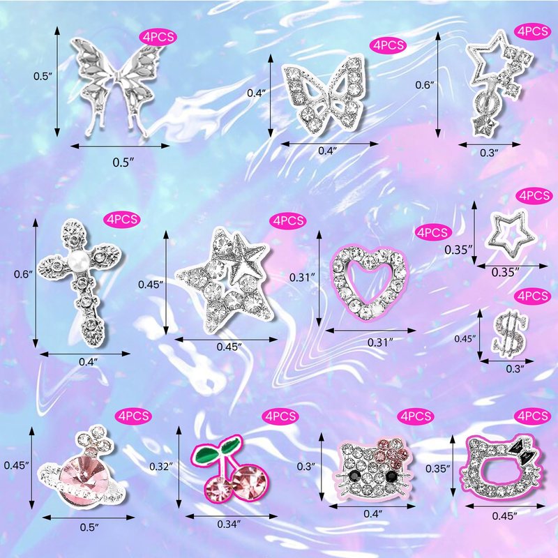 Versatile and Chic: Whether you're heading to a formal event or just hanging out with friends, these silver charms for nails and kawaii nail charms have got you covered. The stars and crosses with pearls offer a sophisticated look, while the butterflies and hearts charms bring a cute and playful vibe. Mix and match to create the perfect style for any occasion.