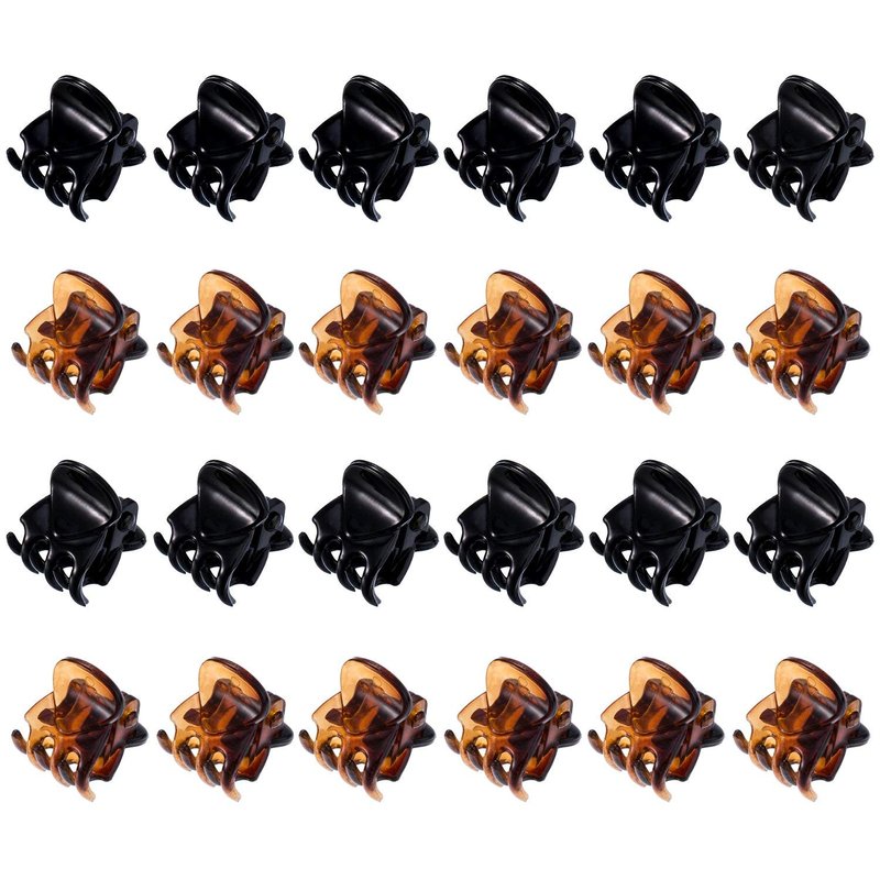 HOTOP 24 Pcs Small Mini Hair Clips Tiny Hair Claw Clips, Small Hair Clamps Non Slip Tiny Plastic Jaw Clips for Girls and Women(Black, Brown)