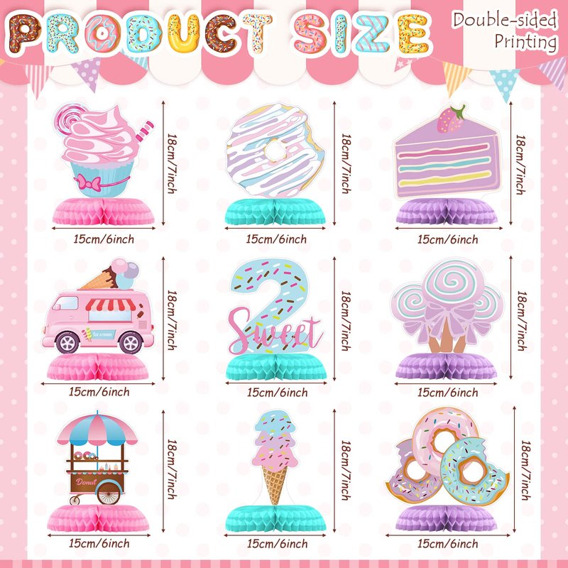 - Package Includes: you will get 9 pieces of donut two sweet birthday decorations table honeycomb centerpieces in 9 different styles, which are very suitable for your kid's donut two sweet birthday party supplies