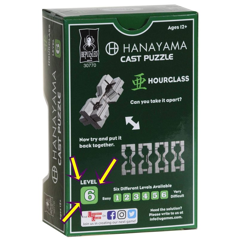 It may take more than several hours of sand passing through the neck of an hourglass before one masters the Hanayama HOURGLASS puzzle. This is a level 6 puzzle on a scale on 1 to 6 where 6 is the most difficult. Most will find the HOURGLASS Puzzle an excellent challenge. Requires much thinking, planning and many attempts at shifting pieces back and forth. Equally challenging is to put the puzzle back together. Occasionally someone will accidentally separate the pieces and think they are a genius !!!! NOT SO ! Mastering the puzzle means you can disassemble and assemble the four pieces easily. Meaning you know exactly which moves to execute to untangle the pieces and then to re-assemble. Solving any Hanayama Puzzles is not an accidental lark, but a true understanding of how the pieces need to be manipulated. NO FORCE is ever required to solve the puzzle. Just a series of clever moves. Recommended for ages 13 to 105 years. NO Force Rule = Forcing pieces may damage the puzzle !! Includes Red Velveteen Drawstring storage pouch. Measures approximately 3 x 4 inches laying flat. Bundled Items. Official Hanayama Puzzles are packaged in the dark green box with see-through front.