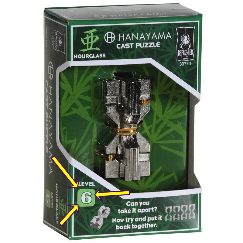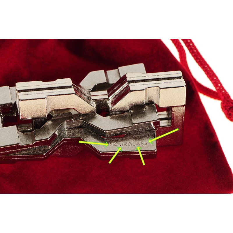 • HOURGLASS Hanayama is 4 piece, hourglass-shaped, Cast Metal Brain Teaser, Take-Apart Puzzle. Bundled Items.