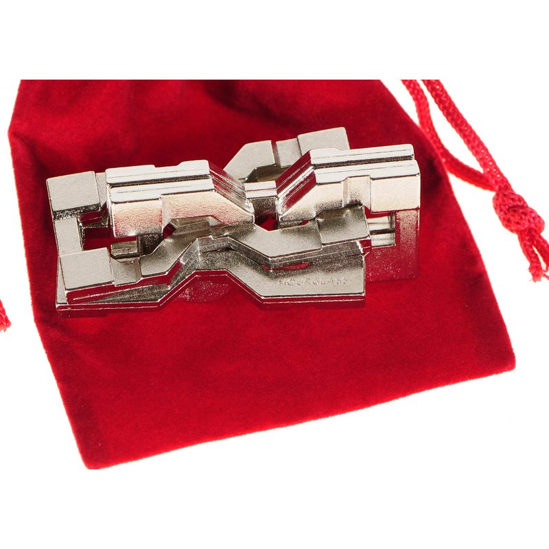 Hourglass Hanayama Brain Teaser Puzzle, New 2019 Release, Level 6 Difficulty Rating, RED Velveteen Pouch
