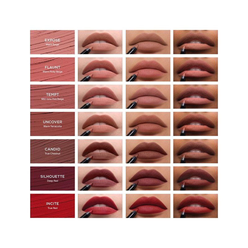 Experience full coverage color that doesn’t smudge, feather or fade. Infused with nourishing Jojoba Oil, this ultra creamy, highly pigmented lip liner effortlessly glides onto lips without skipping or tugging, delivering precise application for fuller looking lips.