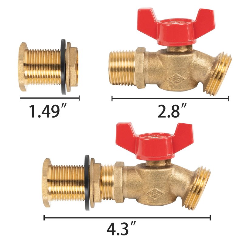 - High quality: Heavy-duty solid brass bulkhead fitting, screwed along the 1-1/8 inch internal thread all the way, with spigot installed at both ends. Heavy-duty 1-1/8 inches, no kinks, right-angle rotating solid brass ball valve.