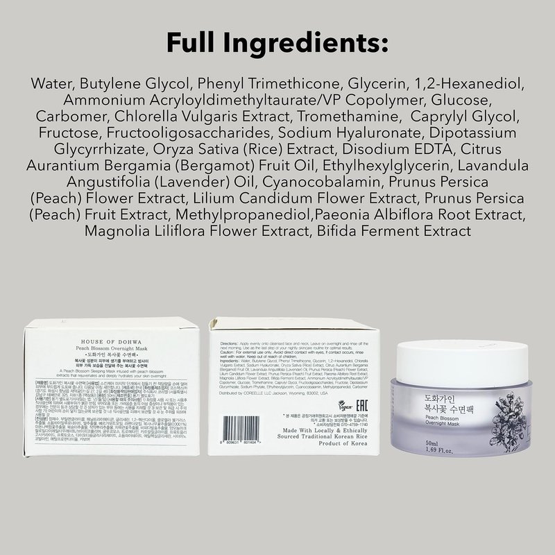 House of Dohwa, Peach Blossom Overnight Mask l Vitamin C, Rejuvenating, Hydrating l Product of Korea - 1.69 fl. Oz