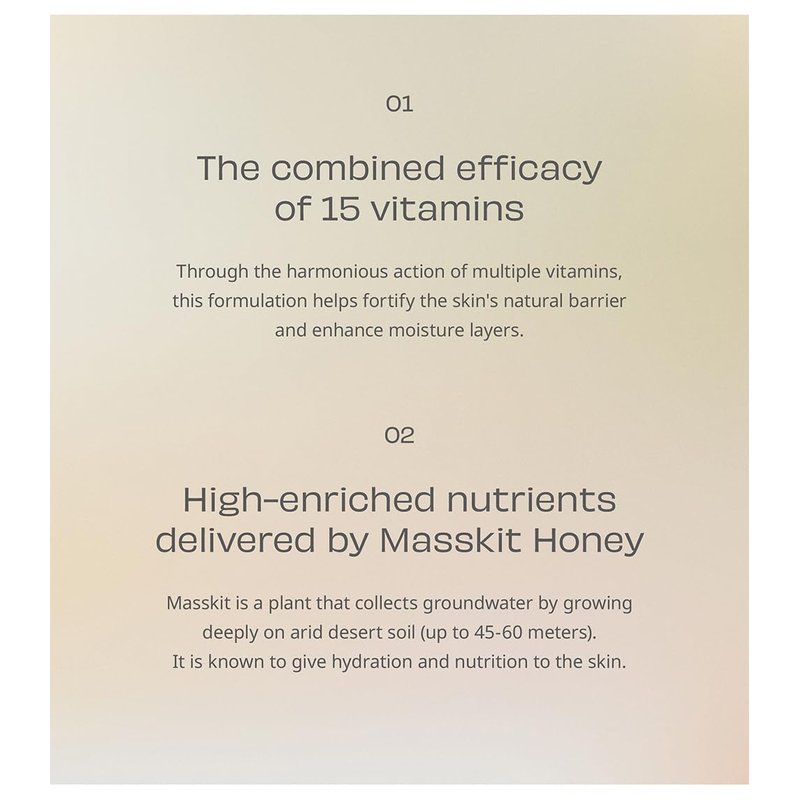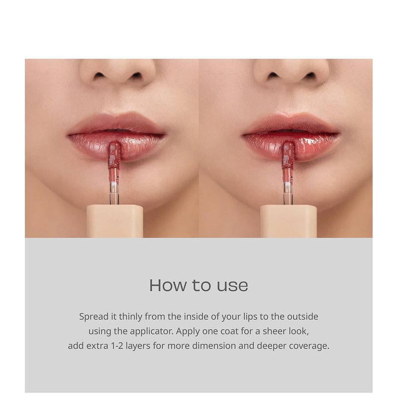 Your personal taste, lifestyle, and comfort are what truly matter. Just as you would at home, embrace your natural beauty while staying true to your individuality. Express your elegance and allure in your own distinctive way, without the need for extravagance. Water-based glowy lip stain With its hydrating formula, it applies naturally without any stickiness helping to create a full dewy look. Even after multiple applications, your lips will stay moisturized and glowing. Colorful lips immediately after one application With just a single touch, your lips will be fully colored for a healthy and luminous glow. Non-sticky, it gives off a long-lasting naturally radiant, and hydrated look. Four colors for a daily look Soft and bright colors allow you to create a natural look with one coat or add more intensity with two or three coat layers. The combined efficacy of 15 vitamins Through the harmonious action of multiple vitamins, this formulation helps fortify the skin's natural barrier and enhance moisture layers. High-enriched nutrients delivered by Masskit Honey Masskit is a plant that collects groundwater by growing deeply on arid desert soil {up to 45-60 meters}. It is known to give hydration and nutrition to the skin. How to use Spread it thinly from the inside of your lips to the outside using the applicator. Apply one coat for a sheer look, and add extra 1-2 layers for more dimension and deeper coverage.