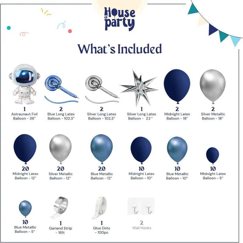 - EASY TO ASSEMBLE: Our astronaut balloon garland arch comes with everything you need to create a stunning balloon arch, including a balloon arch strip tape, a ribbon, and 20-dot glue. Plus, it's easy to assemble, so you can spend less time setting up and more time enjoying the party.