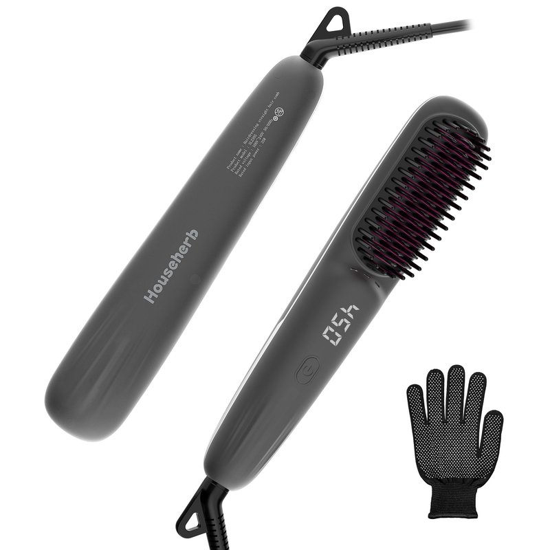 Househerb Hair Straightener Brush, with 200 Million Negative Ions, 9 Temp Settings (290℉-450℉), MCH Fast Heating, Dual Voltage, 2-in-1 Straightening & Curling, Portable Ionic Brush for Travel