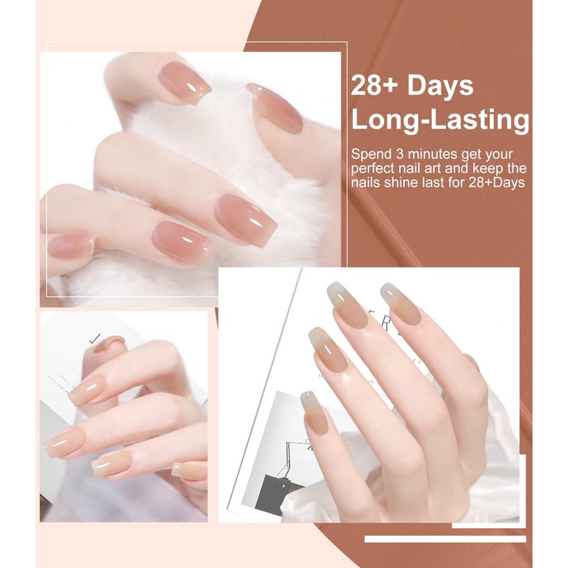 - 【𝐇𝐢𝐠𝐡 𝐆𝐥𝐨𝐬𝐬 𝐚𝐧𝐝 𝐋𝐨𝐧𝐠-𝐋𝐚𝐬𝐭𝐢𝐧𝐠】: Our premium gel material offers excellent durability and intense pigmentation, resulting in a luminous shine, smooth finish, and flawless coverage. When properly applied, this salon-grade transparent jelly nail polish can last up to approximately 4 weeks, providing you with a radiant gloss. Its versatile shades suit any style, and the long-lasting formula ensures your nails stay vibrant and beautiful.