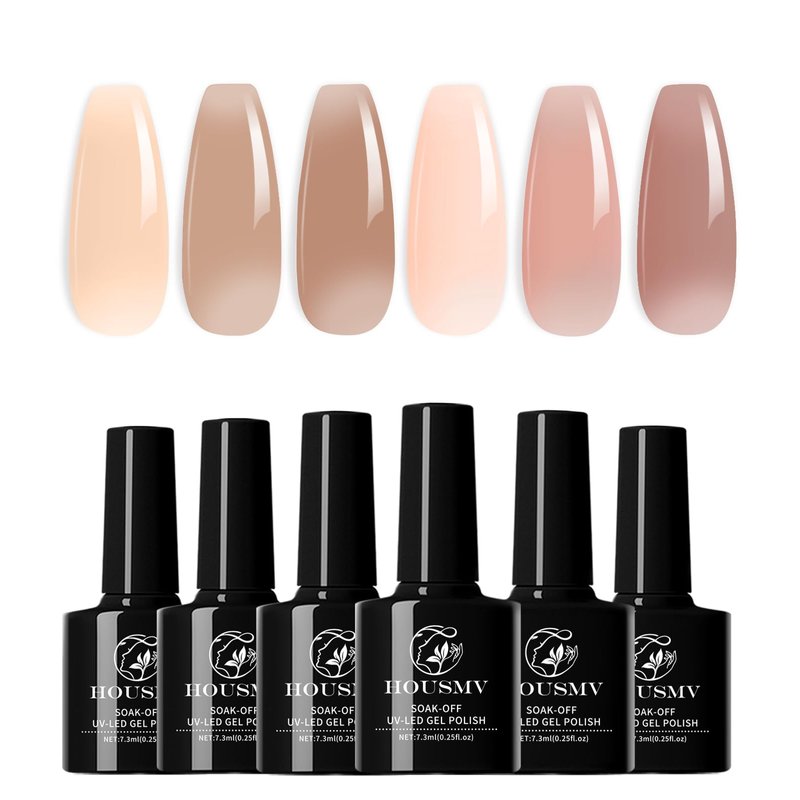 HOUSMV Gel Nail Polish Set:HOUSMV Jelly Nude Gel Polish Kit 6 Colors Soak Off UV LED Nail Polish Gel manicure kit for DIY Nail Art Design Salon Home Gift for Women & Girls Nail Art Must Have