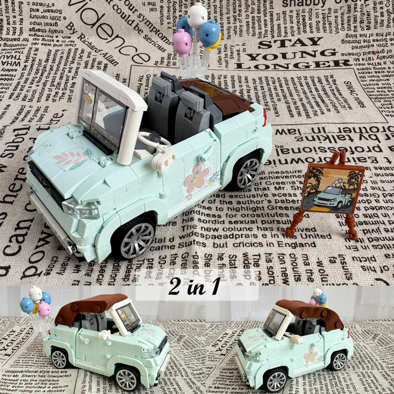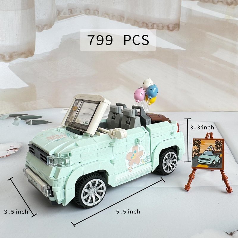 - Creative Convertible Design:Green car body and cute balloon elements bring a romantic vibe. Build a nostalgic convertible with love-filled details using these car building blocks—perfect for a dreamy vacation display.