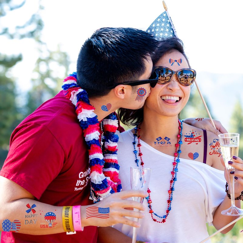 Our USA tattoos are the festive decor you've been looking for! These July 4th metallic tattoos are waterproof, non-toxic and safe to wear anywhere on your bod! Get a patriotic party look to show your warm welcome to Independence Day and your excitement of 4th of July parading!