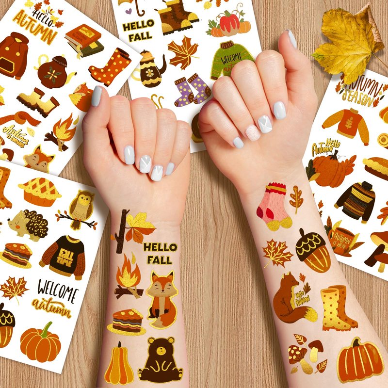 - Buy with Confidence: Any problem of Autumn Temporary Tattoo please feel free to tell us. More fall party decoration such as fall table centerpieces, welcome autumn party decoration set, fall label stickers, fall party tablecloth, thanksgiving gift bags and etc. please visit HOWAF storefront!